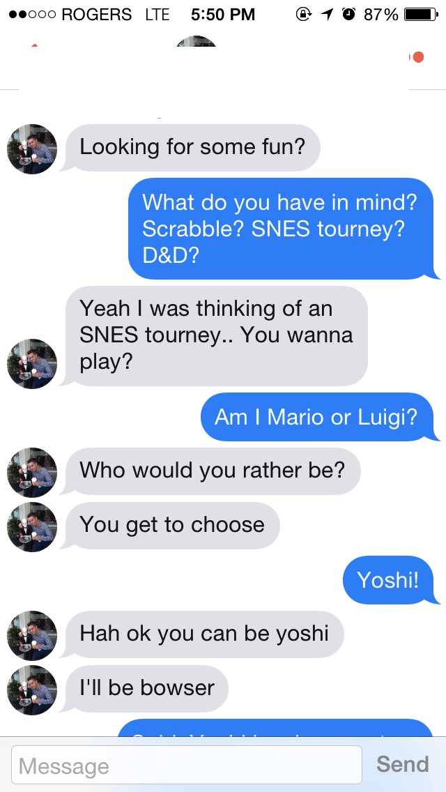 Listen, I know a lot of people on Tinder are just looking to hookup, and if someone messages me at 1am, I don’t actually think they want to play board games. With that being said, after the eleventy-billionth ‘wanna hookup/have fun/bang?’ message, I decided to actually have fun with it. In all fairness, he took it well and played along. And before you get your panties all in a bunch and tell me I should expect it on Tinder, it’s everywhere. This sort of thing transpires on all the sites, at coffee shops, while I walk down the street, fucking everywhere. Random street harassment sidebar: what do the dudes who holler out their car think is going to happen? I drop everything to chase them down and hop in at the next intersection? Idon’tfuckingthinkso.