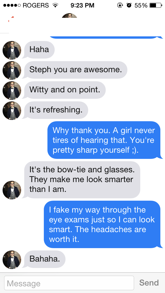 Ruh-roh. Steph likes someone, which means the blog posts are getting scarcer because said someone may or may not have found the blog (I can see search terms, whomever ‘Stephanie stoop blog’ may be … just sayin’). Looks like it’s time to dredge up some old messages!
