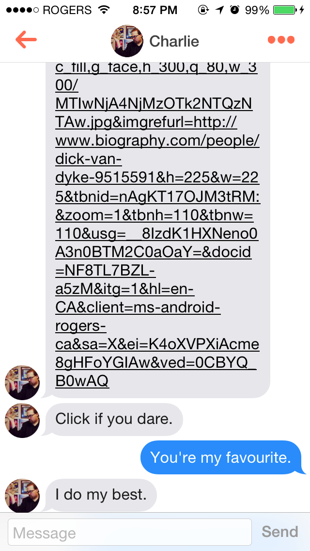 Singles in this city know how small the Toronto dating scene can be. It goes from ‘Wow, what a small world,’ to ‘This is like a bad high school reunion,’ in record time. I have had everyone from close friends to dudes I’ve hooked up with to people I’ve dated show up in my Tinder feed. Since you lose all your data every time you delete it (which I often do, but keep coming back — I have Stockholm Syndrome), you can even match with these people multiple times! The friends are my favourite. If we’re friends, you sure as shit better right-swipe me. You’ll get fun messages like this: