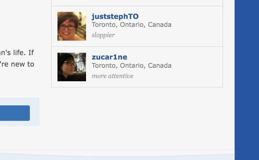 I’m taking another break from the world of online dating to regroup and focus on all the awesome currently in my life, but don’t worry, I’ve got lots of material (I know you were panicking for a minute there). I’ve talked about my strategies for running into people you know on Tinder, but what about the other motley crew of dating sites? I’ve been on a bunch, my friends have been on a bunch, and the Toronto dating scene isn’t so large that our paths were unlikely to cross.