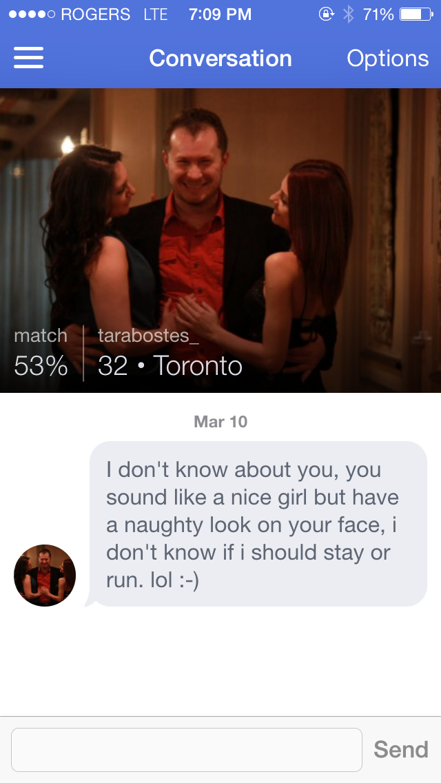 In the end though, if you’re on one site, you’re probably on a few. I’ve run into the same people on multiple sites (some of whom even had multiple profiles); I’ve had people who forgot they messaged me sent me a new message (including this lingerie-loving lad); I’ve even had someone message me on a different site who forgot we actually went out for drinks. Despite the millions of people residing in our fair city, the Toronto dating scene really is quite small. It never seems smaller, though, than when you match with your ex and you imagine them reading your shiny new dating profile. It’s enough to drive a gal to drink.